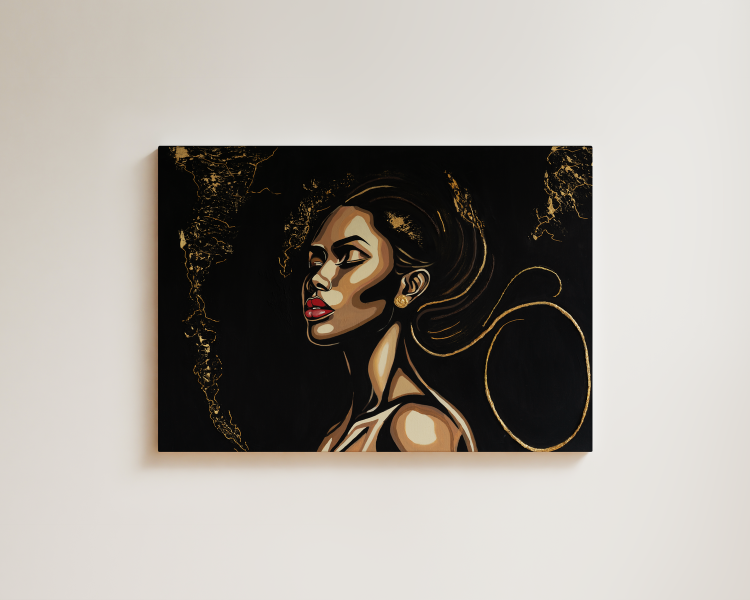 My portraits are built in layers of acrylic and gouache, combining organic shapes with carefully considered finishes. Color is central. It gives life and energy to the work and carries emotion and movement. Each piece explores identity, connection and the quiet strength of the women I paint.